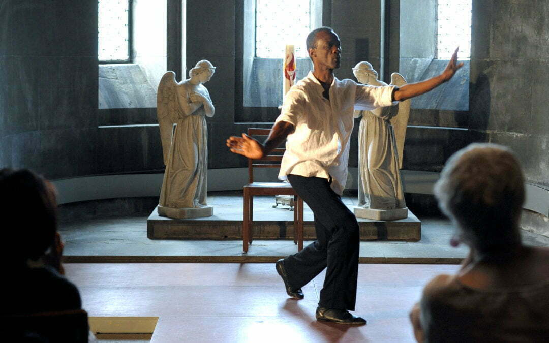 Der Kubaner Orestes Mejica tanzt seine Befindlichkeit in der Schweiz. Simone Abplanalp umrahmt mit Kirschen den Auftritt.
